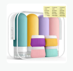 MAYCREATE® 8Pcs Toiletries Travel Bottle,90ml Silicone Travel Bottles with 40ml Face Cream Jars,Upgraded Leakproof Refillable Toiletries Bottles for Lotions Shampoo Accessories