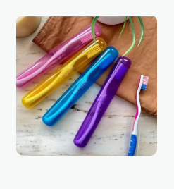 Solitude Pack of 4 Antibacterial Plastic Store Portable Toothbrush Tongue Cleaner Holder Case Traveling, Outdoor, Camping, School Use, Storage & Carry Case Storage Box Cover Organizer (Multicolor)